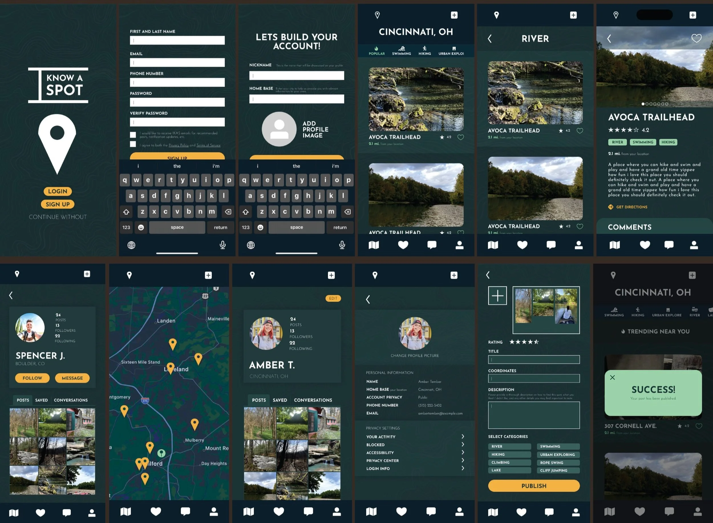 I Know a Spot is a mobile app that provides a place for youth and young adults to find spots to connect with nature and explore outside of the typical playground or park swarmed with the general public.